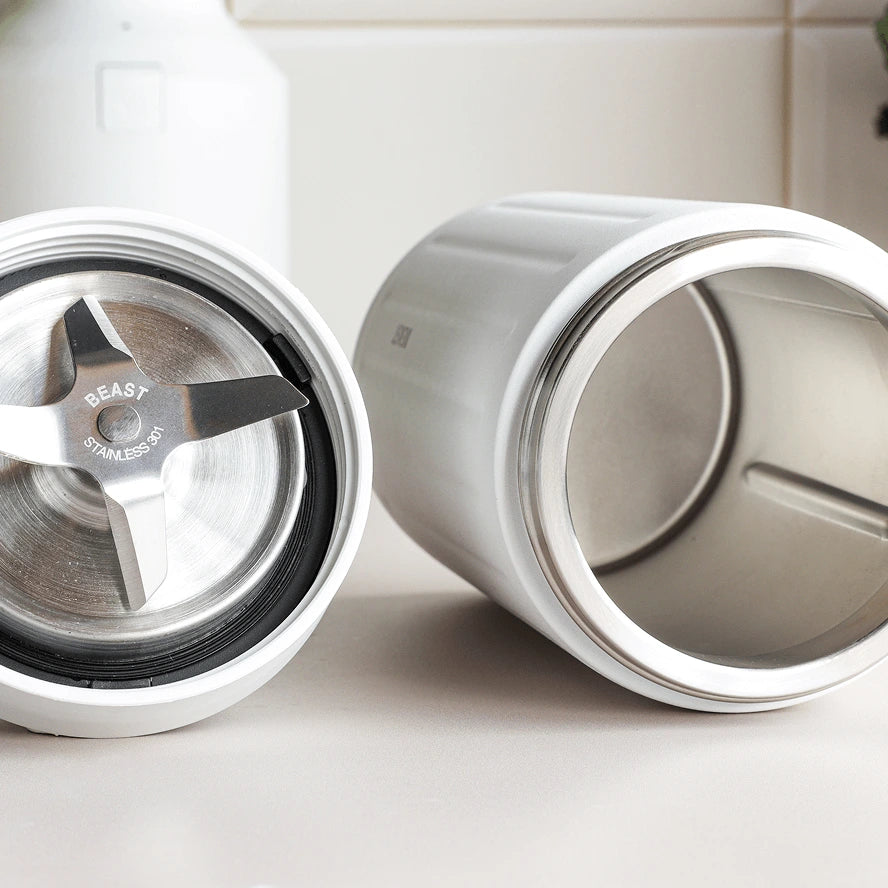 The vessels are made from 304-grade stainless steel, while the blades use 301-grade stainless steel. Both are built to last through years of daily blending. The double-wall, vacuum-sealed design keeps your morning smoothie cold through lunch—without needing to add ice.