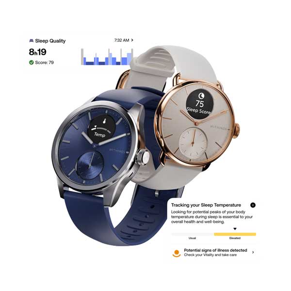 The ScanWatch 2 monitors 35 key health parameters, tracking everything from energy levels and sleep quality to stress regulation and cardiovascular health. Its advanced heat-flux sensor also measures core body temperature — a key marker for cycle and hormone shifts.